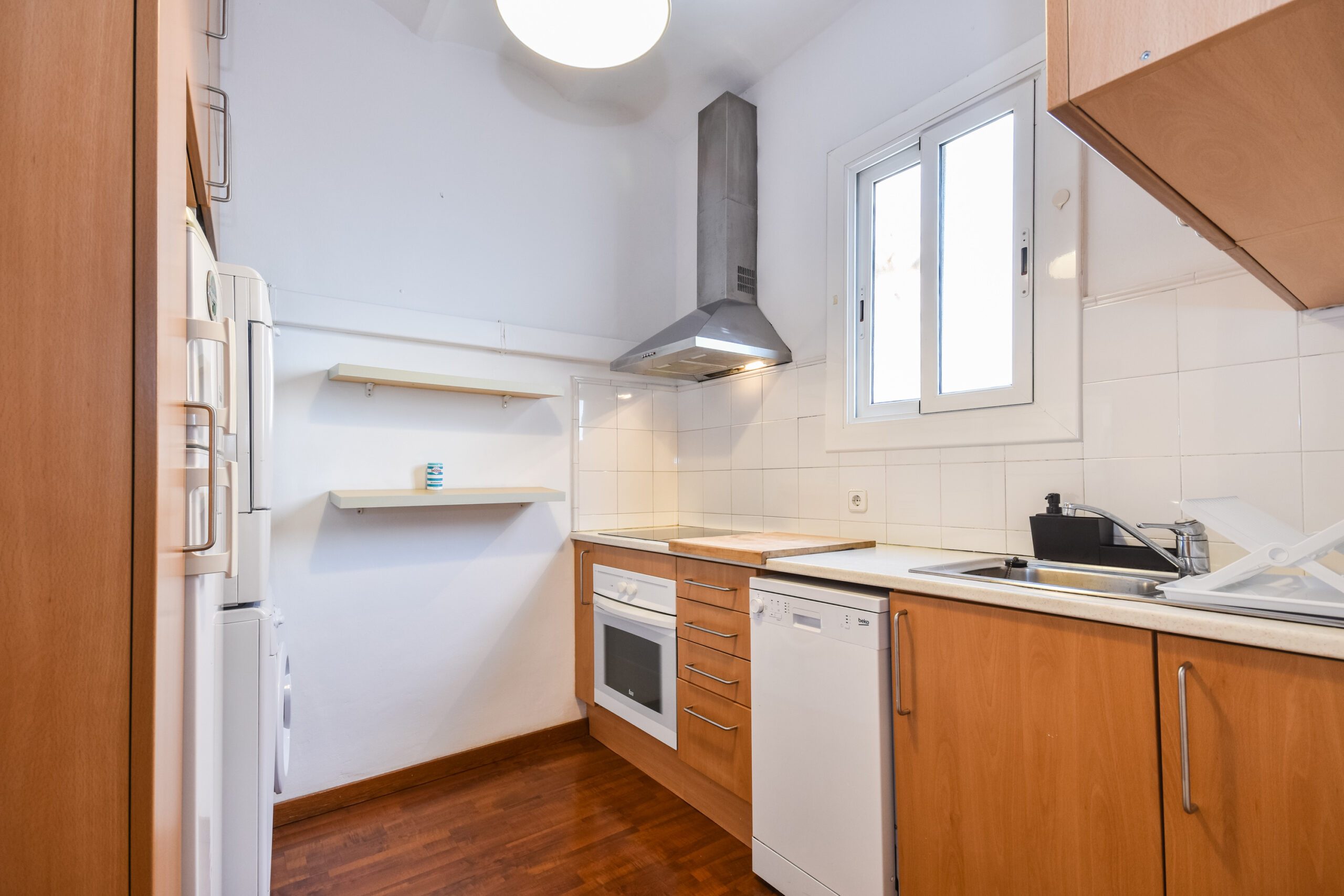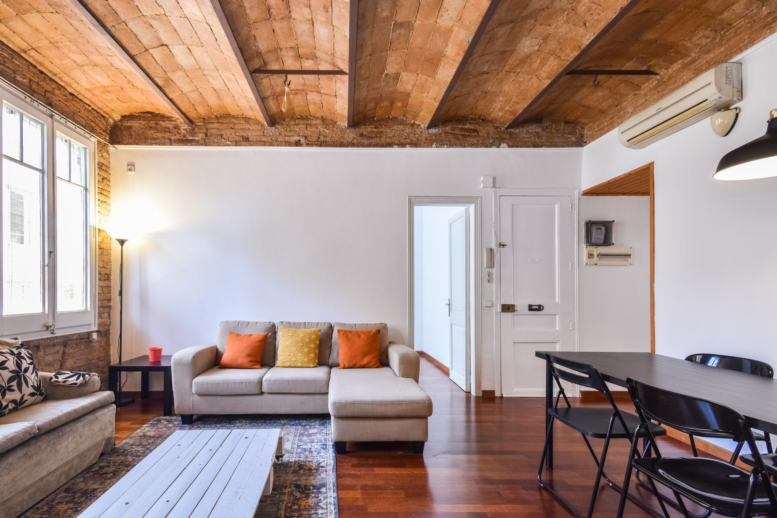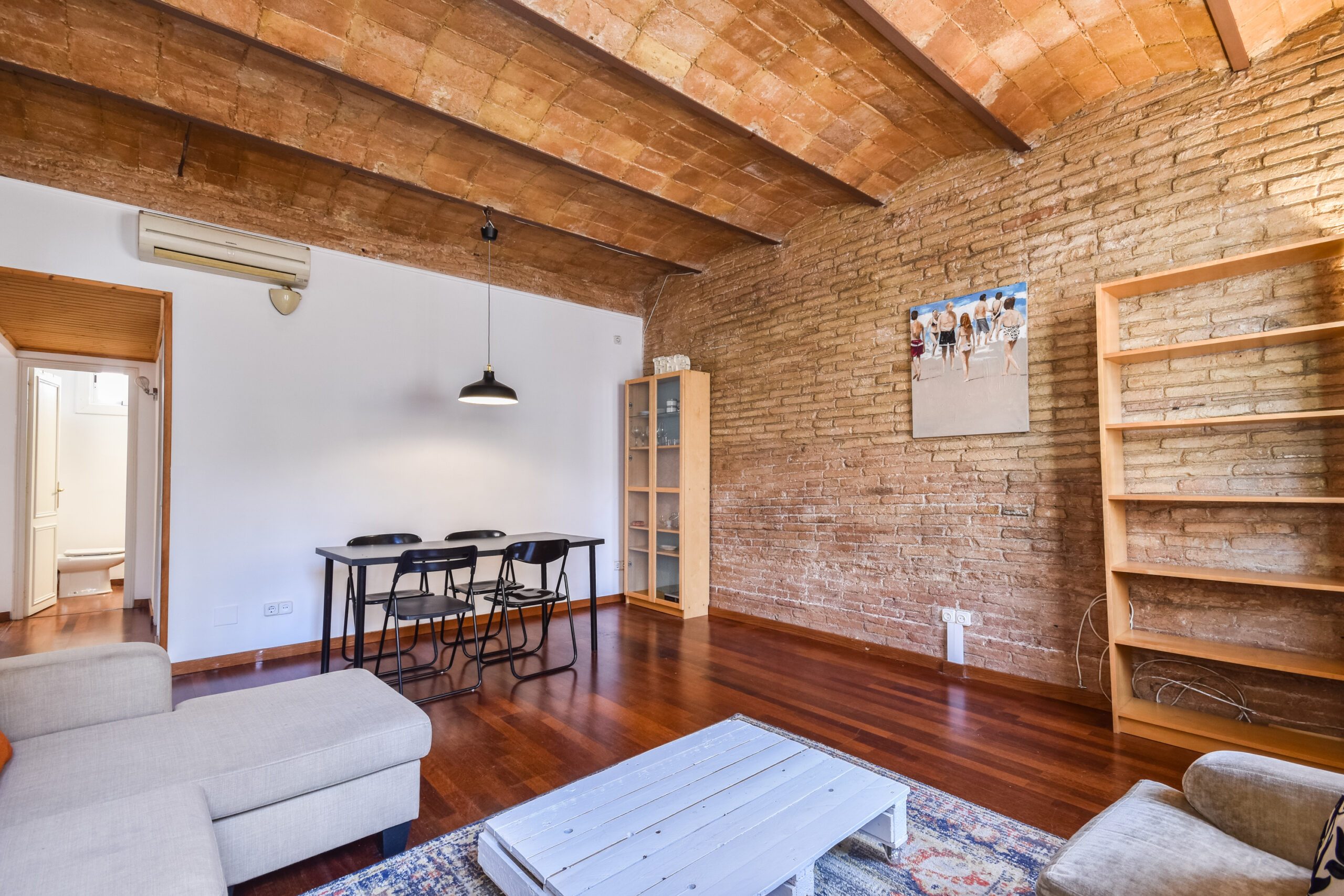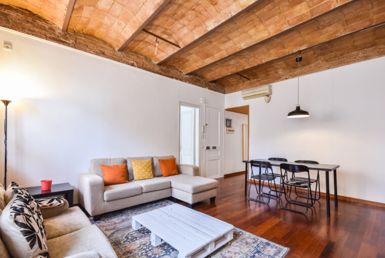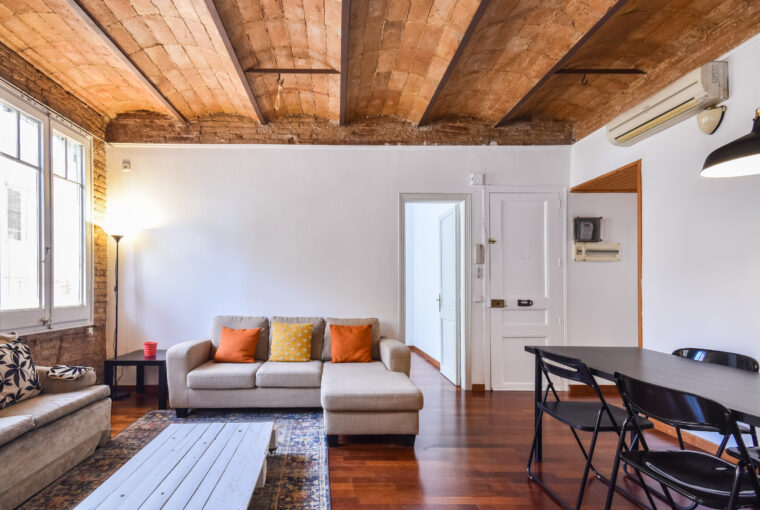 Acogedor piso en plena zona alta de Barcelona, completamente equipado con muebles y electrodomésticos, parquet en todo el piso, volta catalana en los techos y totalmente reformado. Amplio salón con luz natural todo el día, gracias a su orientación SUR. Dispone de dos habitaciones con grandes armarios y un baño completo. Aire acondicionado con bomba de calor. Excelente ubicación junto a plaza Camp, zona en la que abundan los espacios verdes y todo tipo de servicios muy bien comunicado con transportes públicos.