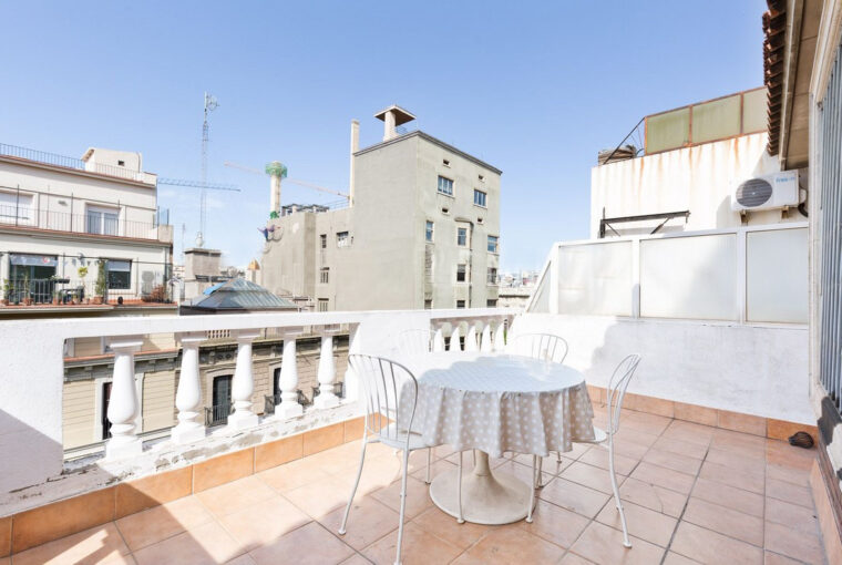 Espectacular ático en pleno corazón de L’Eixample, piso recientemente reformado con carpintería de aluminio, parquet en todas las estancias y una distribución muy cómoda. El piso dispone de un amplio salón comedor con acceso a una terraza de 15 m2, con vistas al Tibidabo. Tres habitaciones dobles y una de ellas con baño completo integrado en la habitación de matrimonio. Gran cocina con todos los electrodomésticos incluidos, lavadora, nevera, horno, lavavajillas etc.